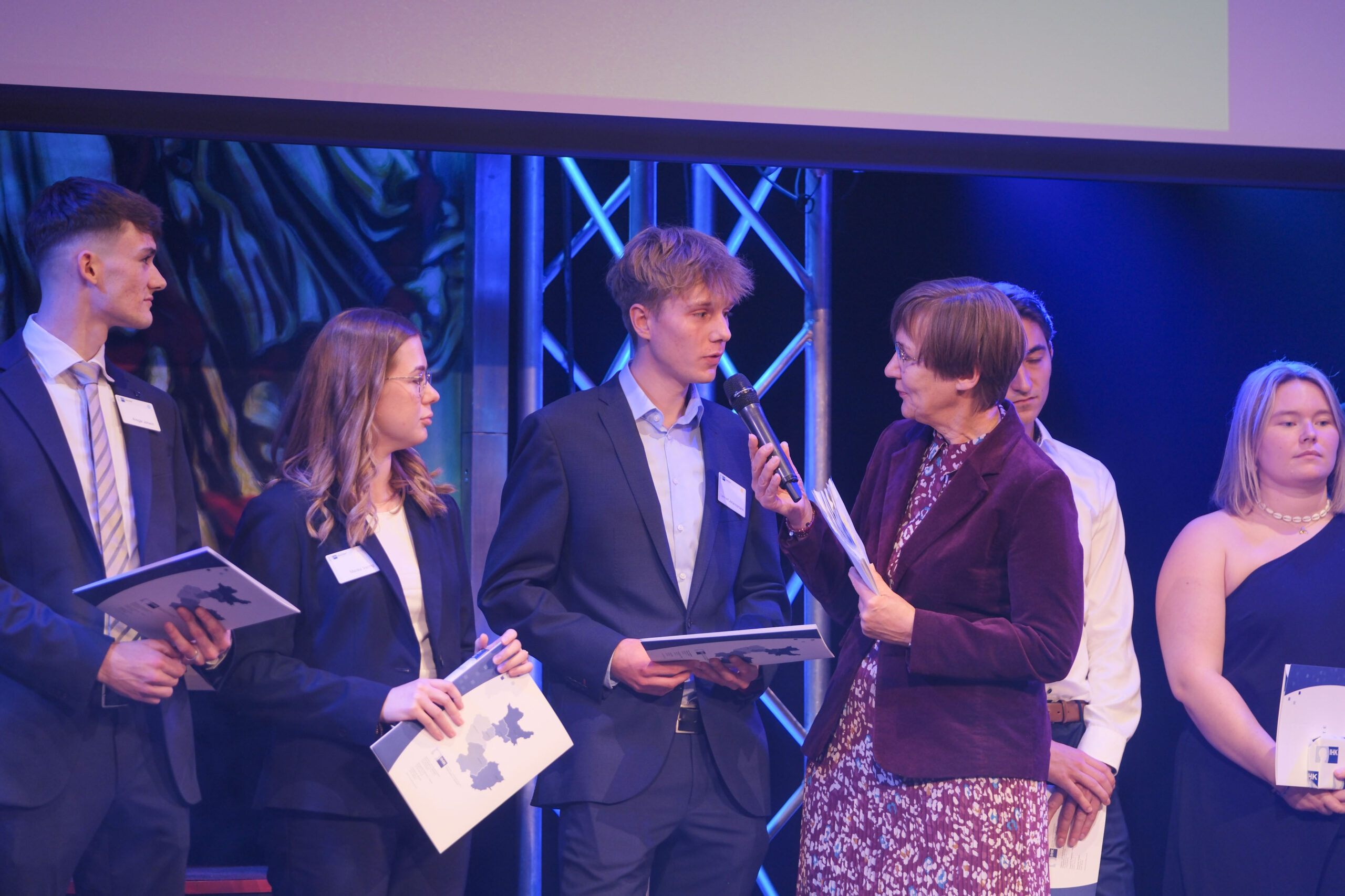 Wie vielfältig die beruflichen Chancen nach der Ausbildung sind, schilderten auf der Bühne Ronja Herzog (Fachwirtin für Büro- und Projektorganisation) und Robin Kiesewetter (Geprüfter IT-Projektleiter). Beide entschieden sich nach der Ausbildung für eine Weiterbildung in der Höheren Berufsbildung – und bestätigten eindrucksvoll, dass der berufliche Aufstieg über die IHK-Qualifikationen ebenso möglich ist wie über ein Hochschulstudium.