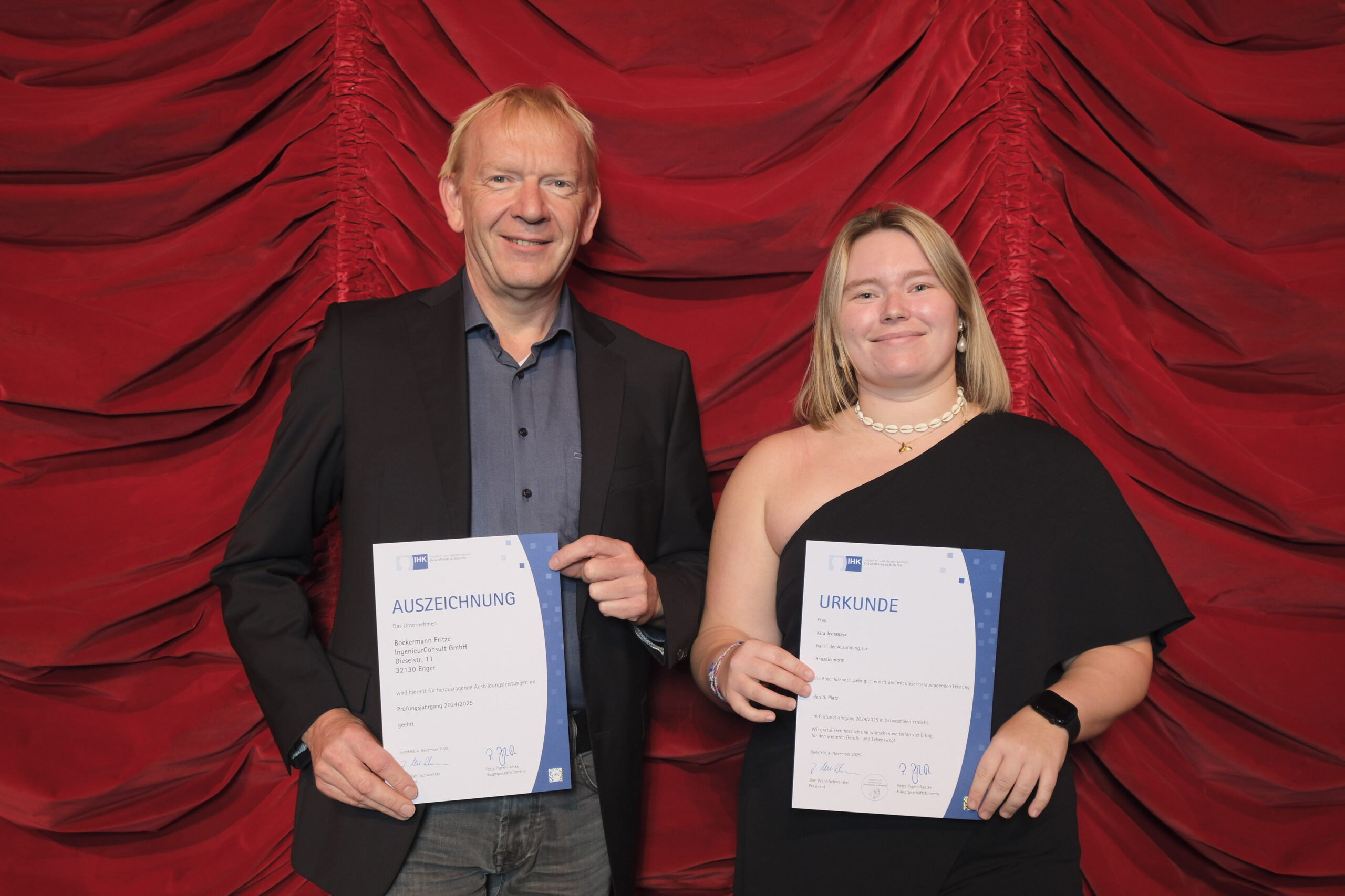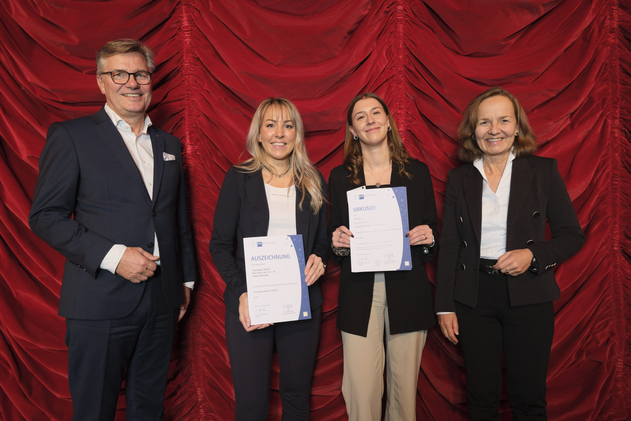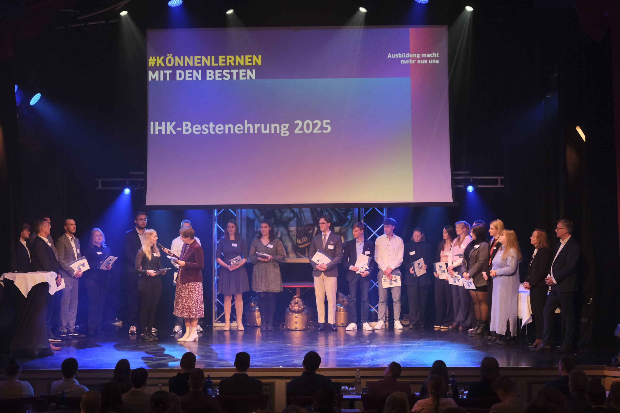 Die 107 besten Auszubildenden des Prüfungsjahres 2024/2025 hat die Industrie- und Handelskammer Ostwestfalen zu Bielefeld (IHK) am Dienstag, 4. November im GOP Varieté-Theater in Bad Oeynhausen ausgezeichnet. Sie zählen jeweils zu den drei Besten ihres Ausbildungsberufs und haben ihre Abschlussprüfungen mit der Note „sehr gut“ bestanden. Insgesamt legten 7.324 Auszubildende ihre Prüfungen vor den ehrenamtlichen IHK-Prüfungsausschüssen ab.
