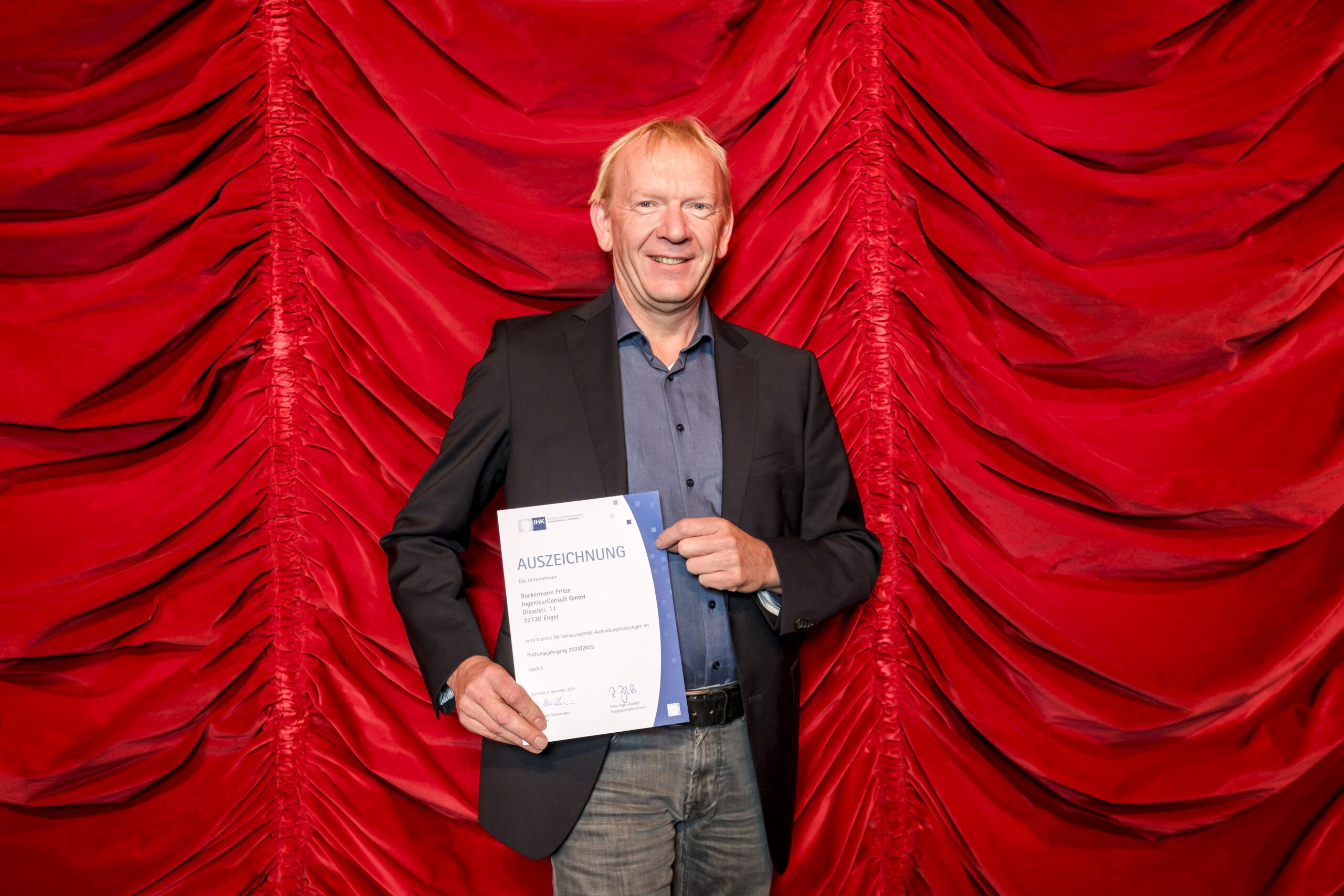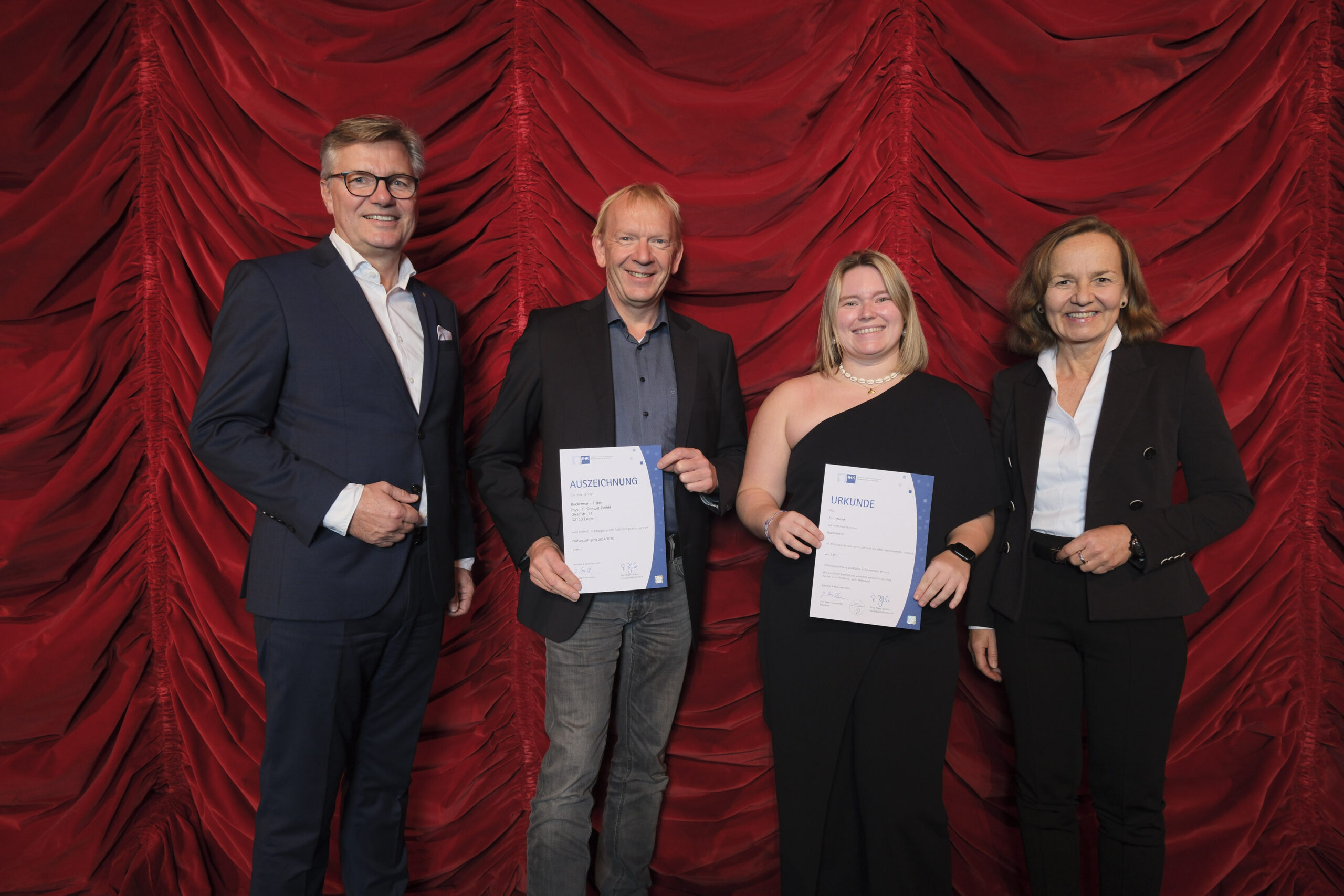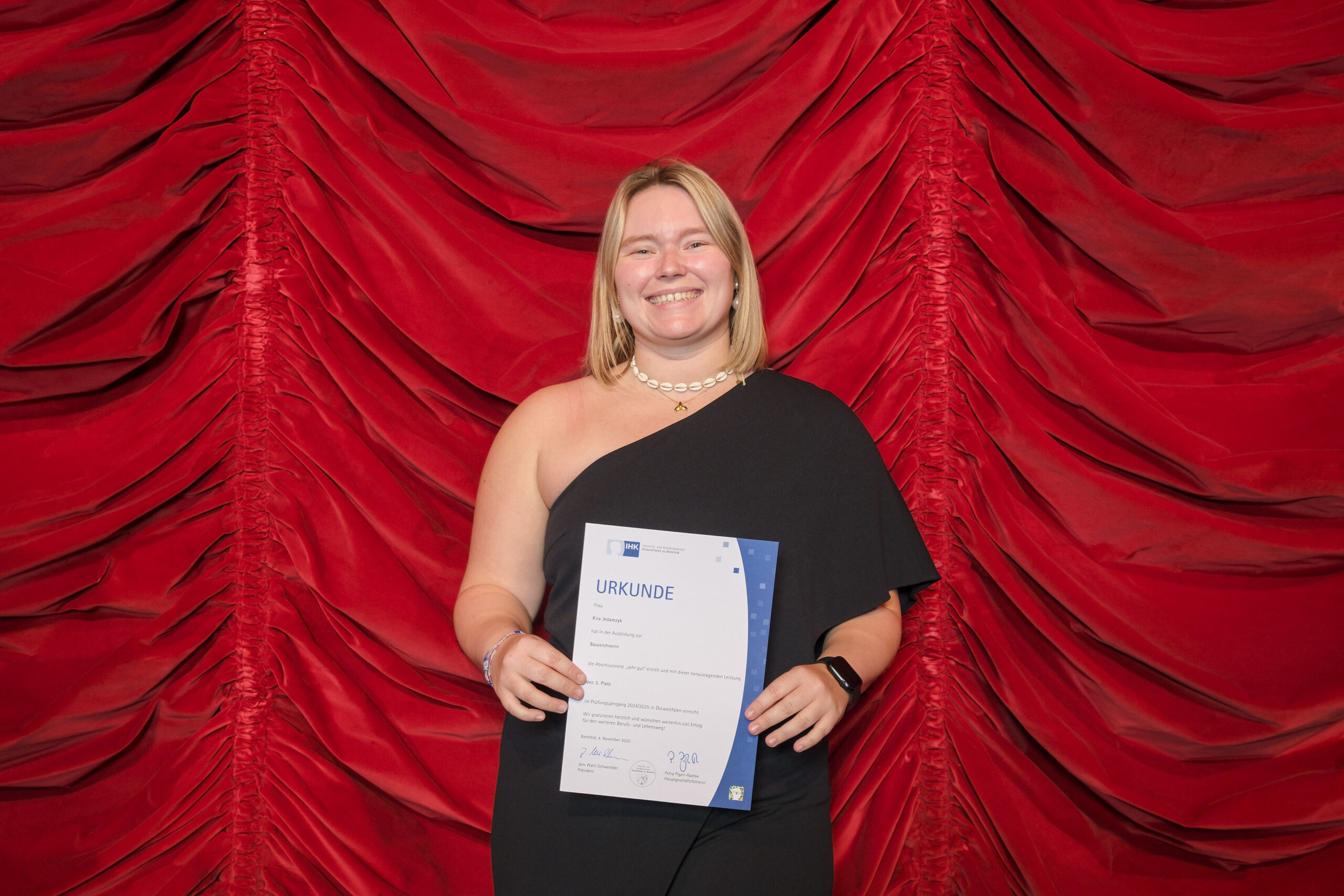 Die 107 besten Auszubildenden des Prüfungsjahres 2024/2025 hat die Industrie- und Handelskammer Ostwestfalen zu Bielefeld (IHK) am Dienstag, 4. November im GOP Varieté-Theater in Bad Oeynhausen ausgezeichnet. Sie zählen jeweils zu den drei Besten ihres Ausbildungsberufs und haben ihre Abschlussprüfungen mit der Note „sehr gut“ bestanden. Insgesamt legten 7.324 Auszubildende ihre Prüfungen vor den ehrenamtlichen IHK-Prüfungsausschüssen ab.