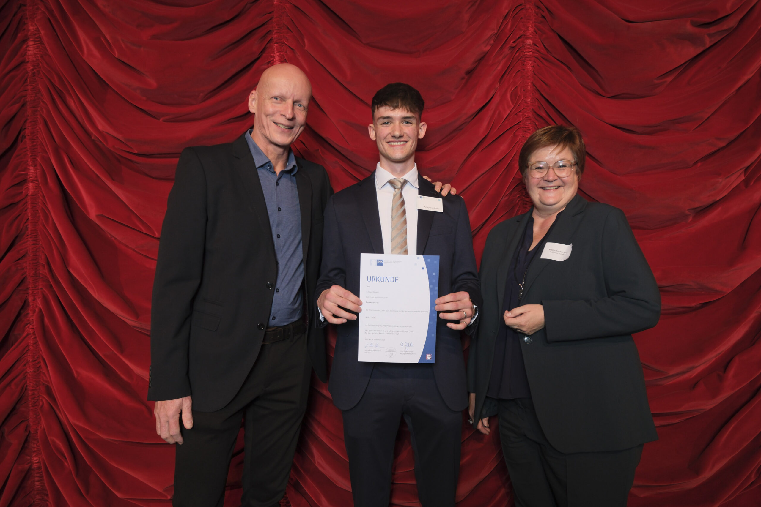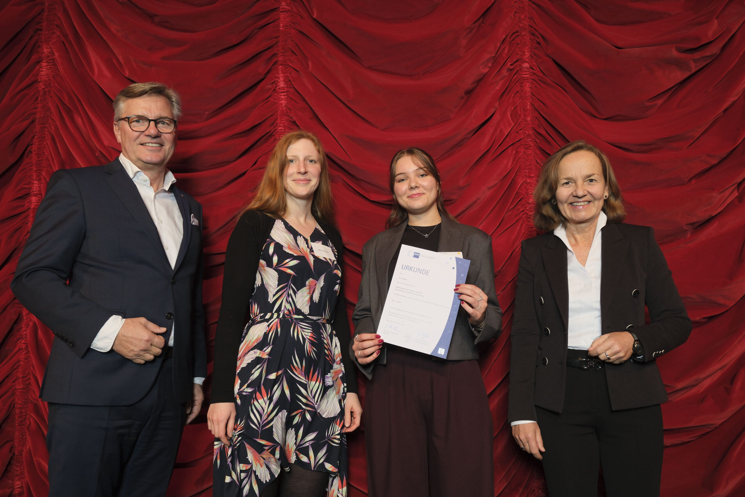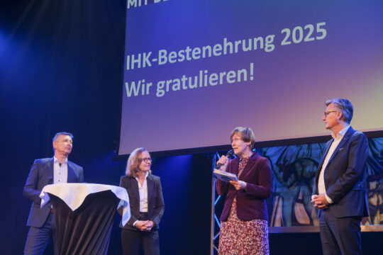In den kommenden zehn Jahren werden insbesondere wegen des Renteneintritts der Boomer-Generation rund 230.000 Stellen in unserer Region neu zu besetzen sein – das ist etwa jeder vierte Arbeitsplatz. Darum brauchen wir Sie und weitere gut ausgebildete Fachkräfte“, wandte sich der IHK-Präsident an die Ausbildungsbesten. „Sie sind die Antwort auf eine der zentralen Zukunftsfragen unserer Wirtschaft.“