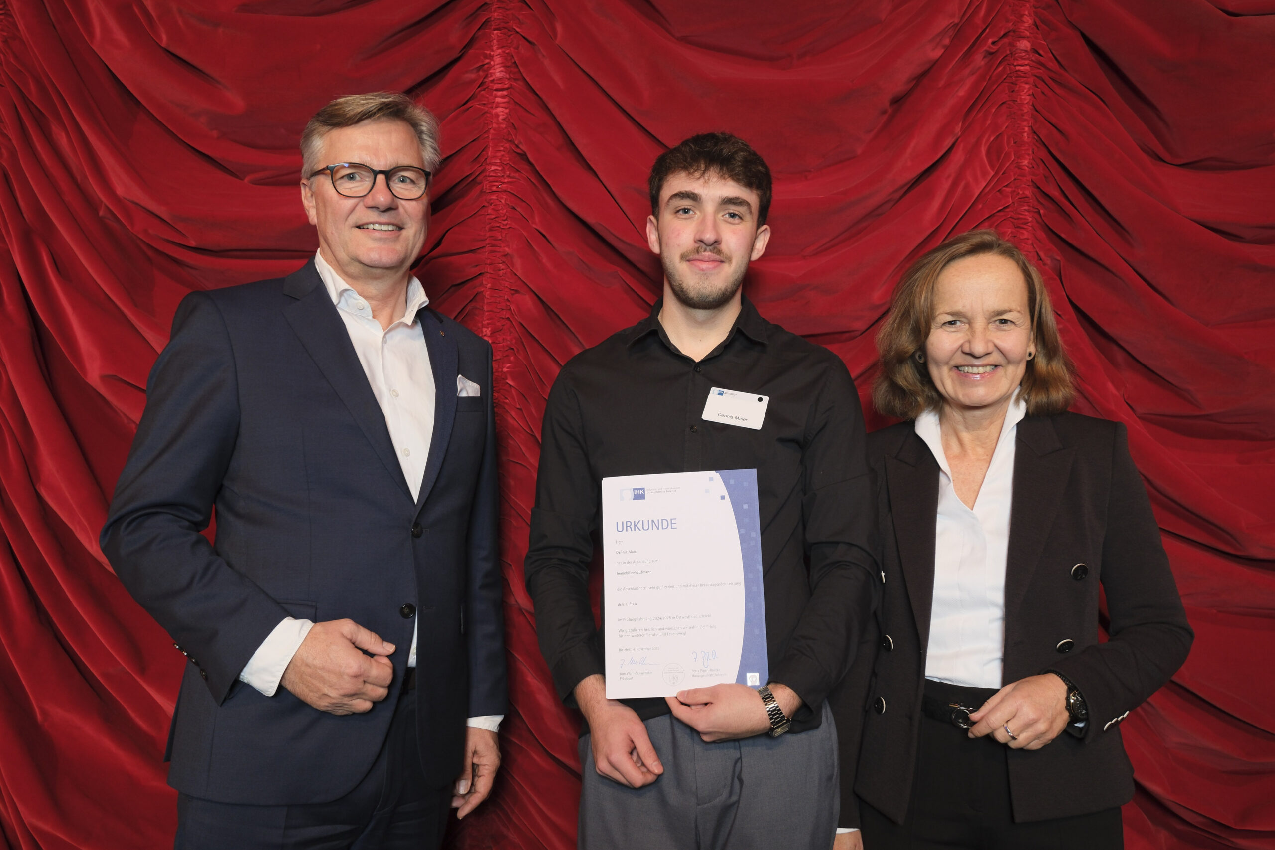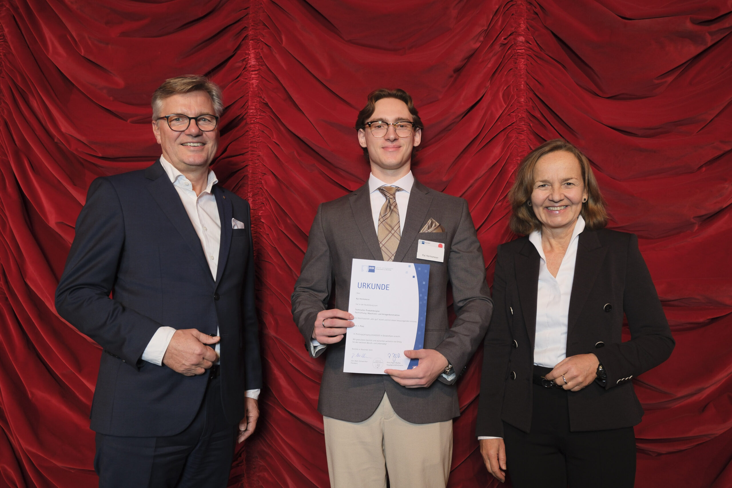 IHK-Präsident Jörn Wahl-Schwentker und IHK-Hauptgeschäftsführerin Petra Pigerl-Radtke gratulierten den Besten persönlich und würdigten ihre Leistungen als „herausragend und beispielgebend für die ganze Region“. „Sie haben bewiesen, dass Können, Engagement und Ausdauer die Basis für beruflichen Erfolg sind“, betonte Wahl-Schwentker. „Schon heute fehlen der Wirtschaft in Ostwestfalen Fachkräfte.