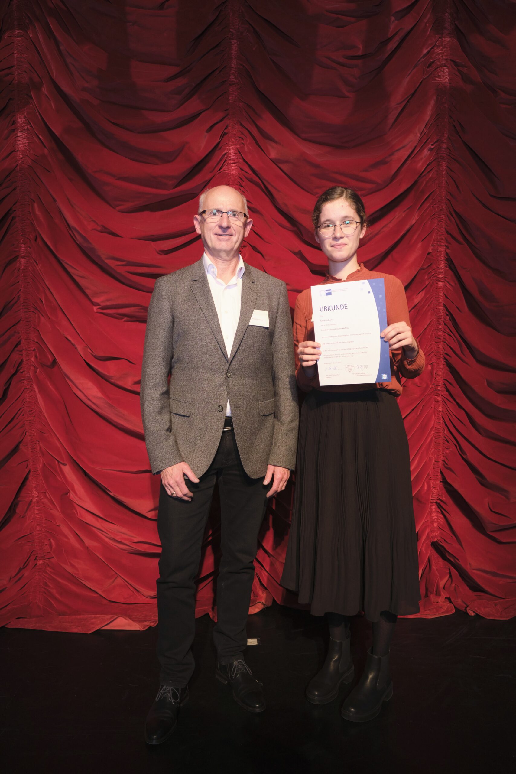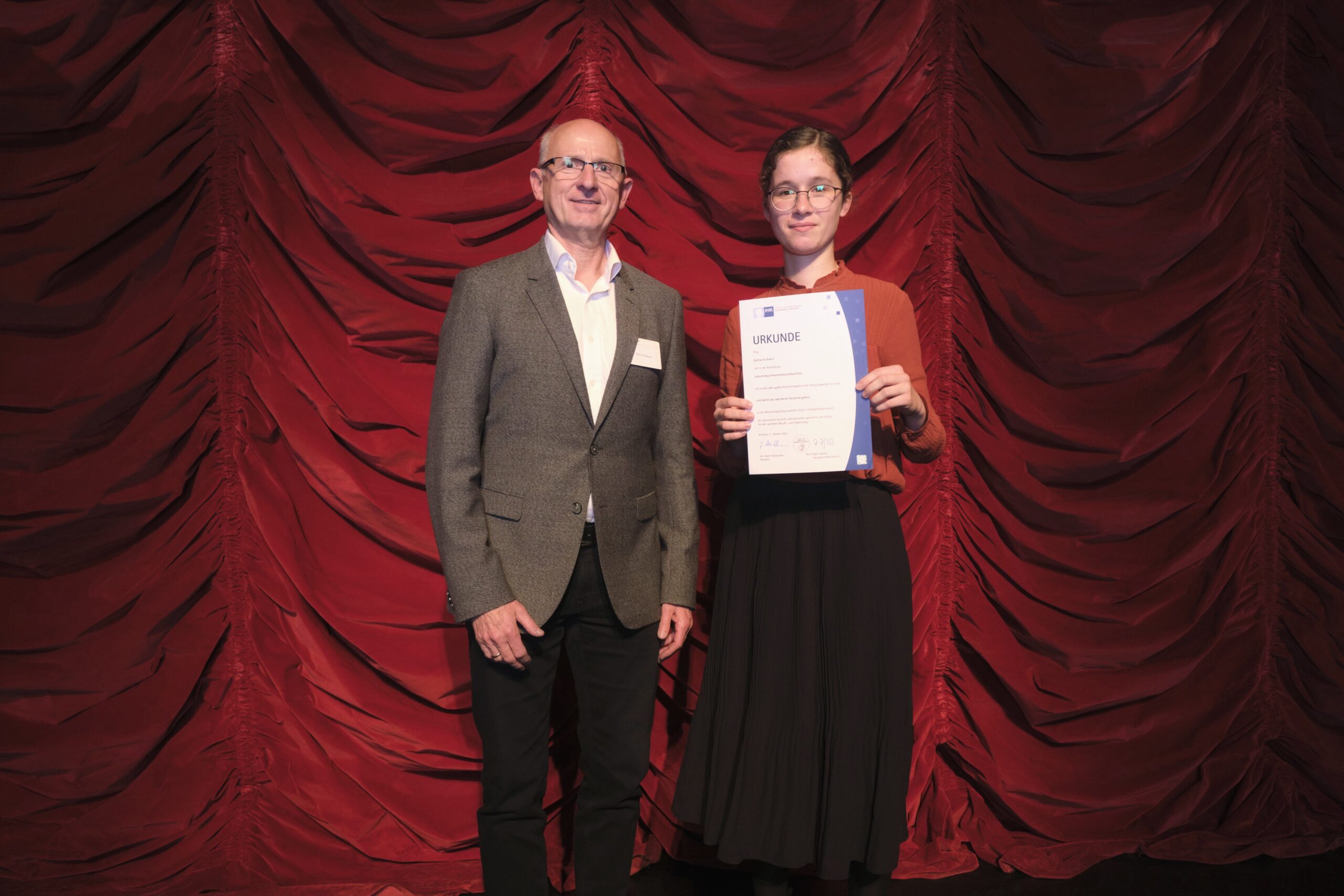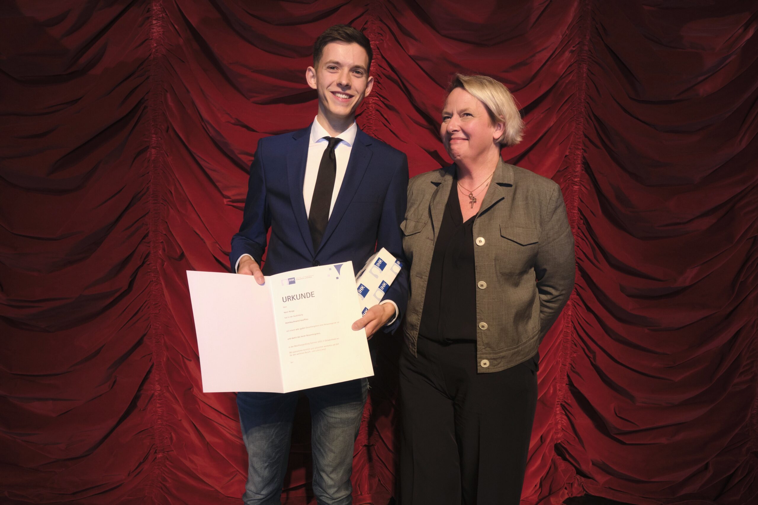 Die erfolgreichsten Absolventinnen und Absolventen sind am 25. Oktober 2022 von IHK-Präsident Jörn Wahl-Schwentker und IHK-Hauptgeschäftsführerin Petra Pigerl-Radtke für ihre hervorragenden Leistungen im GOP Varieté Theater in Bad Oeynhausen geehrt worden.