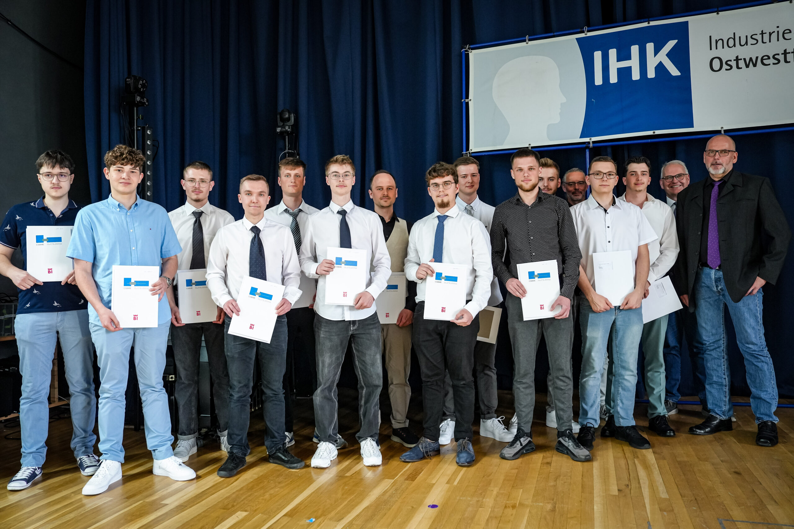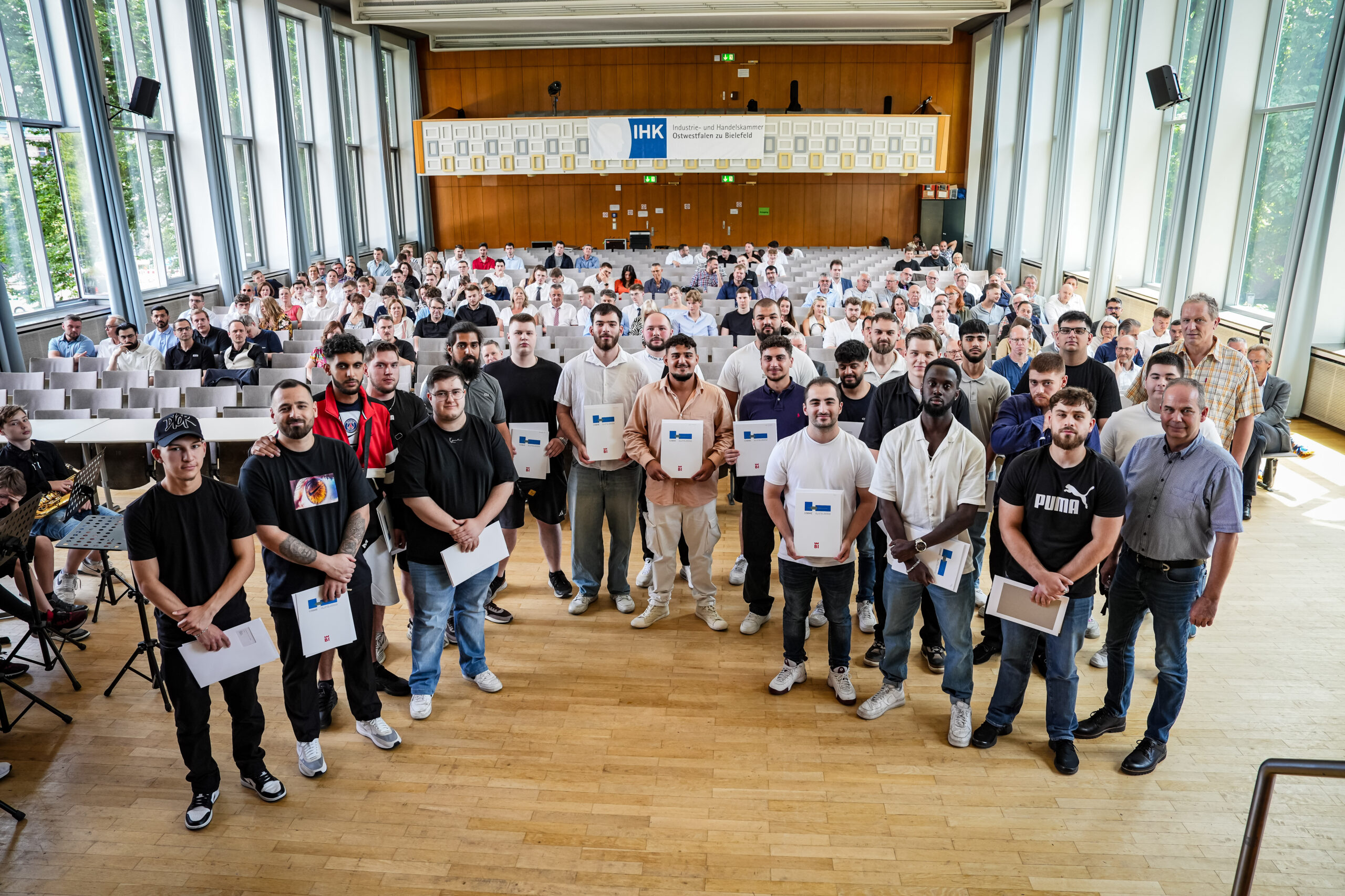 In einer Feierstunde der Industrie- und Handelskammer Ostwestfalen zu Bielefeld (IHK) erhielten am 28. Juni 2024 die frisch gekürten Facharbeiterinnen und Facharbeiter der IHK ihre Urkunden. Von den Facharbeiterinnen und Facharbeitern absolvierten 71 ihre Prüfung in der Fachrichtung Metall, 13 in Elektrotechnik sowie 10 in Mechatronik.