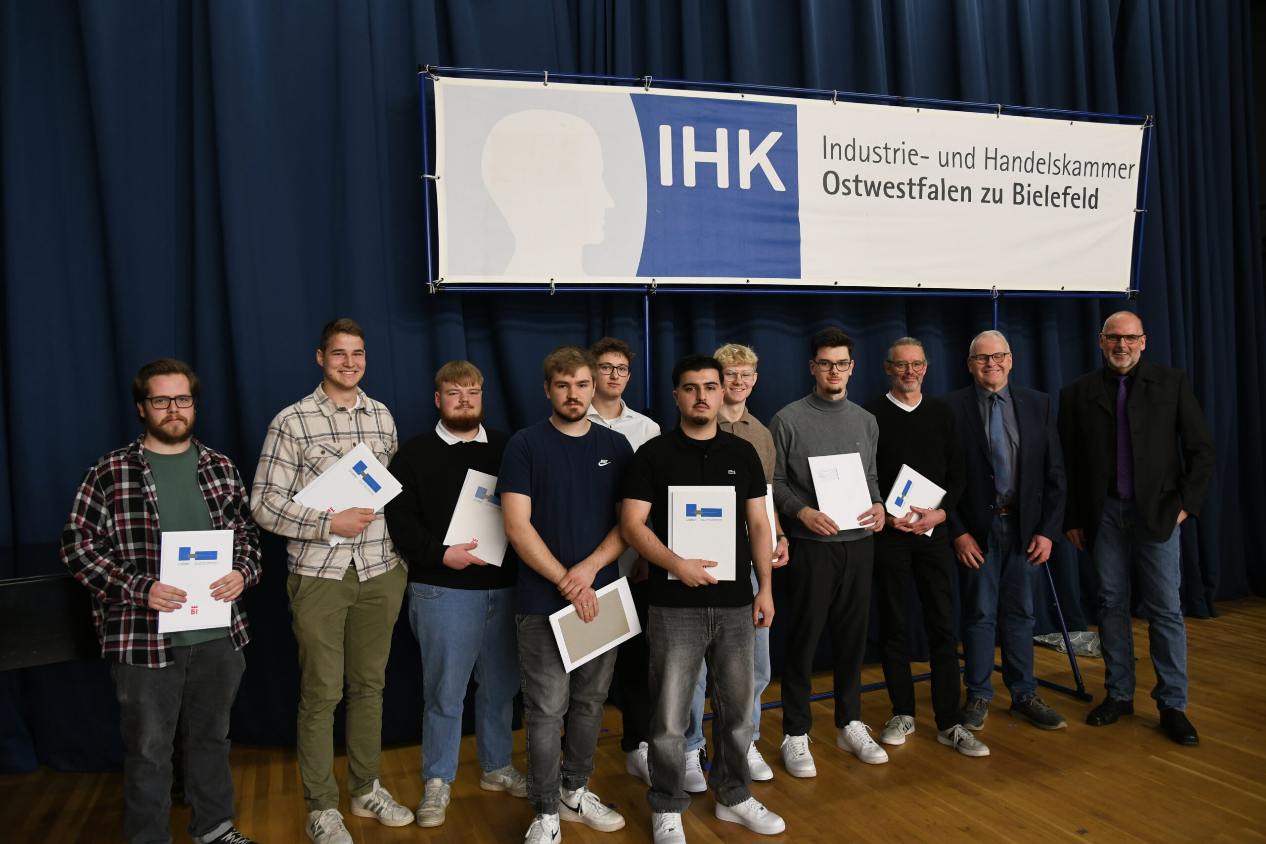 Die Industrie- und Handelskammer Ostwestfalen zu Bielefeld (IHK) hat 120 Absolventinnen und Absolventen der Ausbildungswinterprüfungen 2024/2025 aus Bielefeld und dem Kreis Gütersloh verabschiedet. Die Zeugnisvergabe fand in der Aula des Bielefelder Gymnasiums am Waldhof statt.