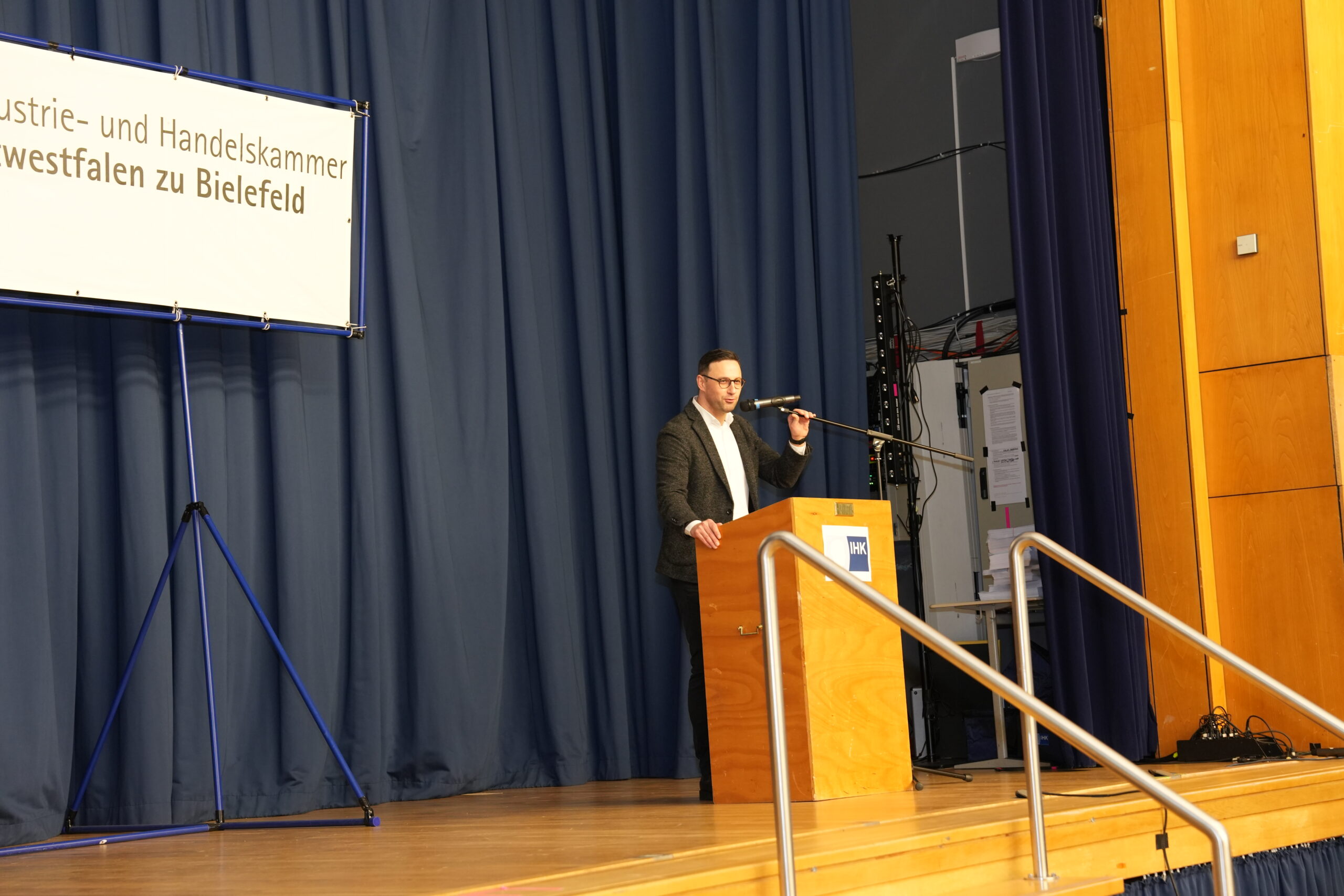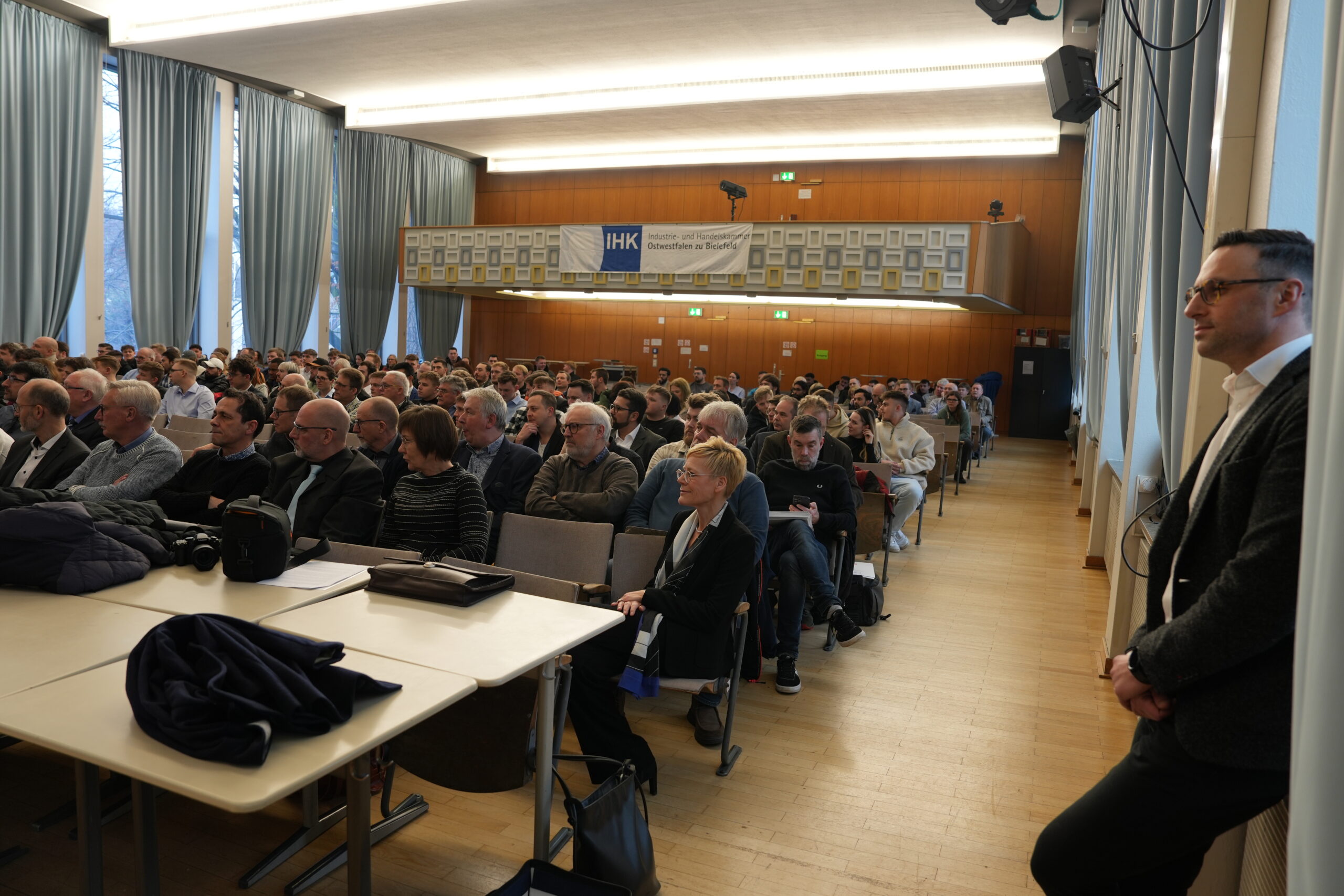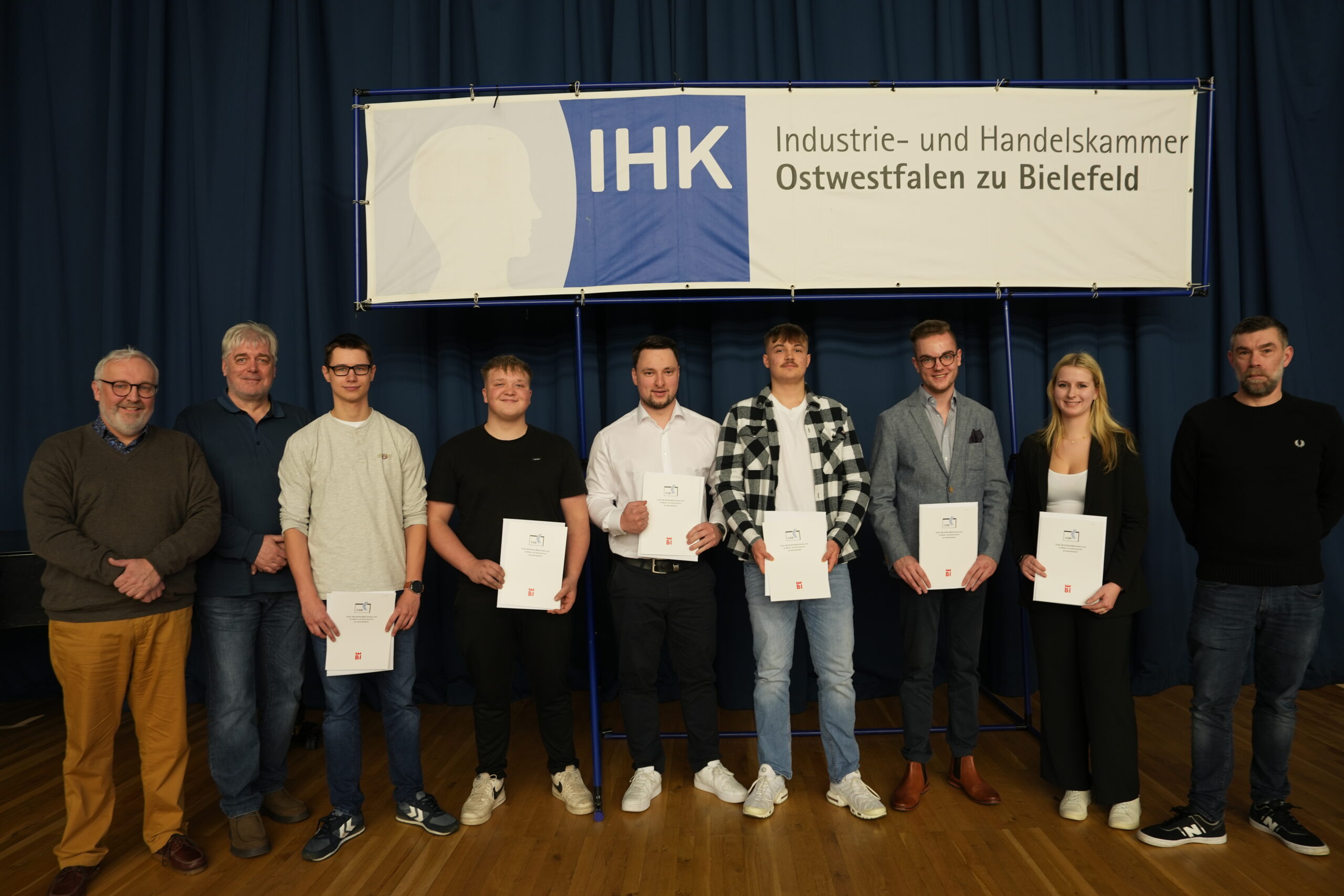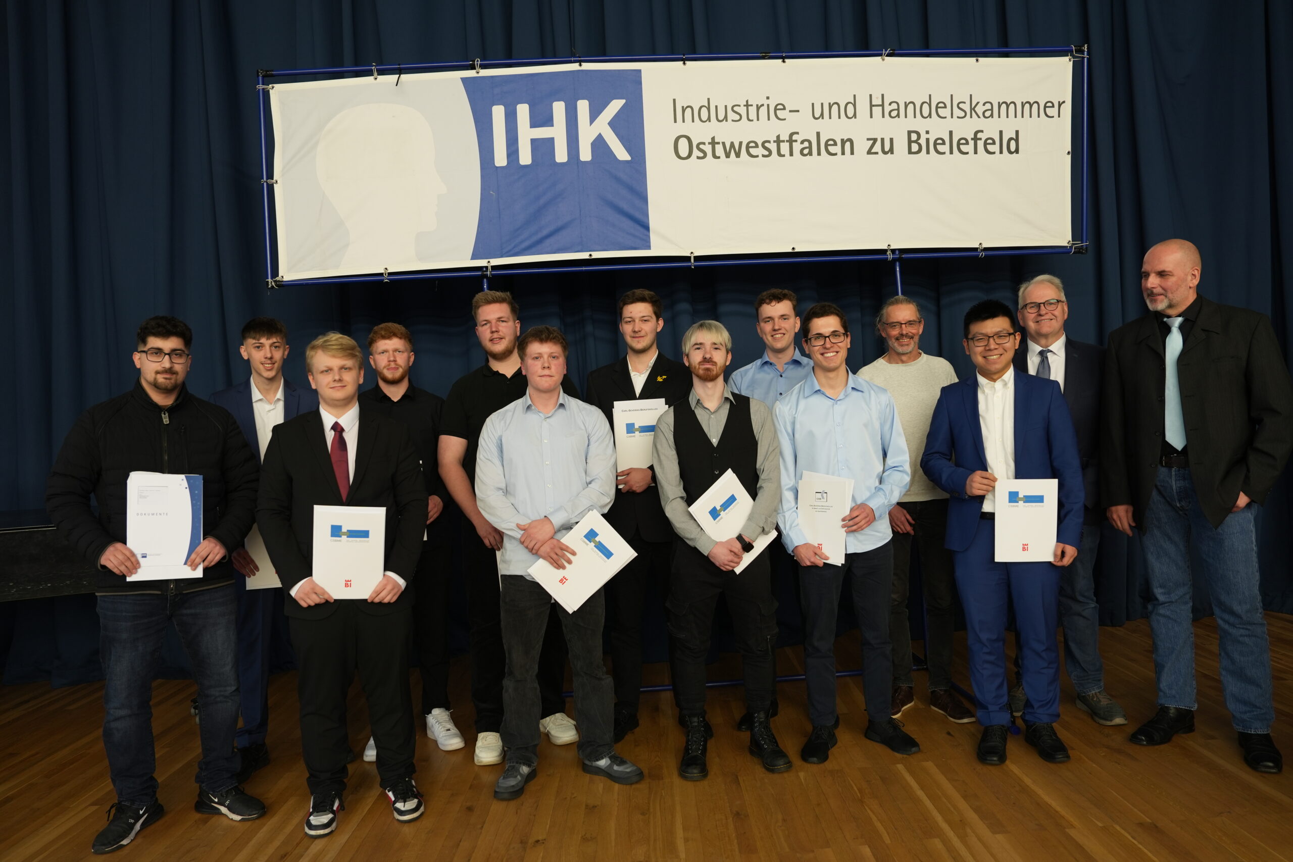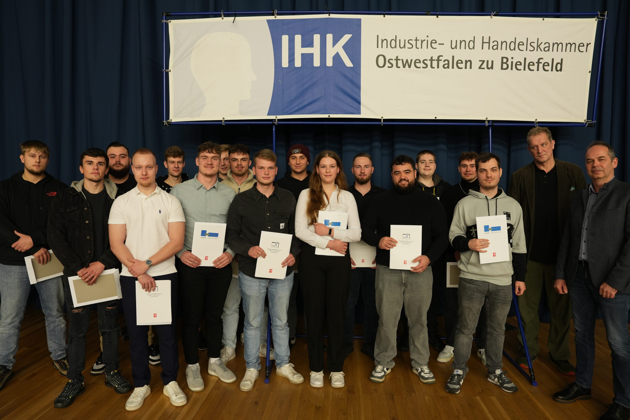 IHK-Facharbeiterverabschiedung: Die Industrie- und Handelskammer Ostwestfalen zu Bielefeld (IHK) verabschiedete 126 Absolventinnen und Absolventen der Winterprüfungen 23/24 in folgenden Fachgebieten: Industriemechanik, Zerspanungsmechanik, Werkzeugmechanik, Konstruktionsmechanik, Elektronik für Betriebstechnik sowie Mechatronik.