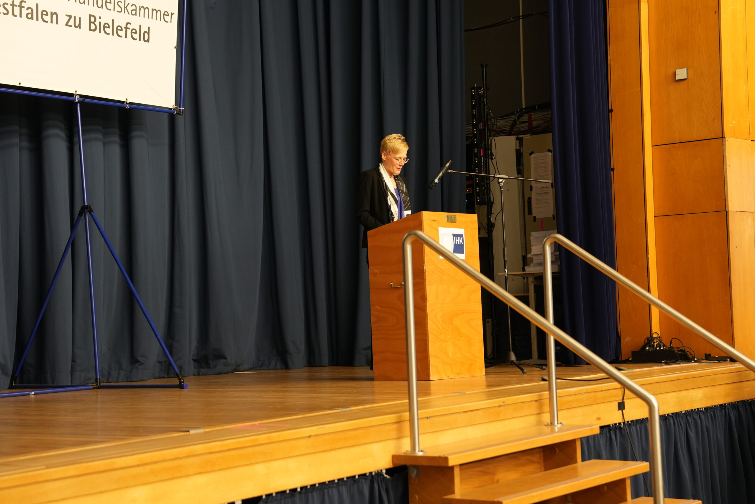 Die Zeugnisvergabe fand in der Aula des Gymnasiums am Waldhof statt. In ihrem Grußwort gratulierte IHK-Geschäftsführerin Berufliche Bildung Ute Horstkötter-Starke den Jungfacharbeiterinnen und -facharbeitern und unterstrich: „Durch das Wissen und die Fähigkeiten, die Sie sich in den Jahren Ihrer Ausbildung angeeignet haben, haben Sie die besten Vorbereitungen für Ihre weitere Karriere geschaffen.“ Besonders erfreulich sei die große Nachfrage der gewerblich-technischen Ausbildung. Eine Ausbildung in diesem Bereich sei nicht nur eine hervorragende Grundlage für den persönlichen Berufsweg. „Sie leisten damit auch einen entscheidenden Beitrag für die Fachkräftesicherung in unserer Region.“
